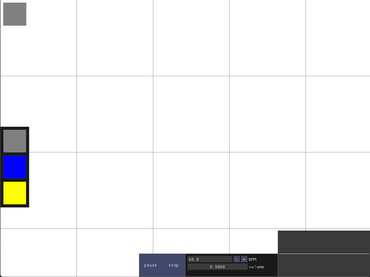 Some planned features are yet to be implemented. Namely, effect blocks, which would affect areas as a whole, parallel sequencer blocks, allowing for chords, and (at least) stereo audio with panning settings for generator blocks. Furthermore, modulator blocks, which could affect variables of up to four adjacent generator, effect, or other modulator blocks would allow for frequency or ring modulation synthesis. Additionally, conditional statements - possibly also implemented in the form of blocks within areas - could toggle other blocks or variables based on various factors, such as the amount of loop iterations passed, the current frequency, or even just based on a random distribution. Lastly, selectable mute groups for areas and generator blocks would allow gemuPG to be used as a versatile live performance instrument.Compile instructions...